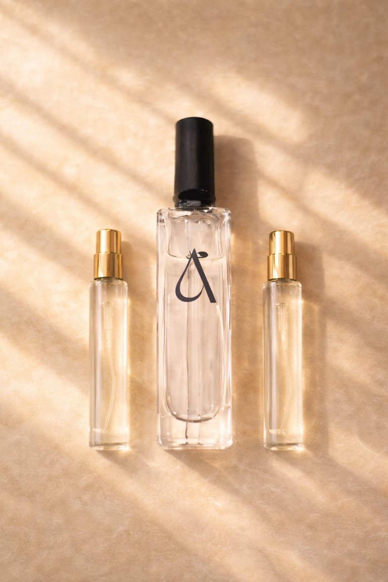 Todos los aromas incluyen perfume de tocador y perfume de bolsillo con cubre polvo de terciopelo.